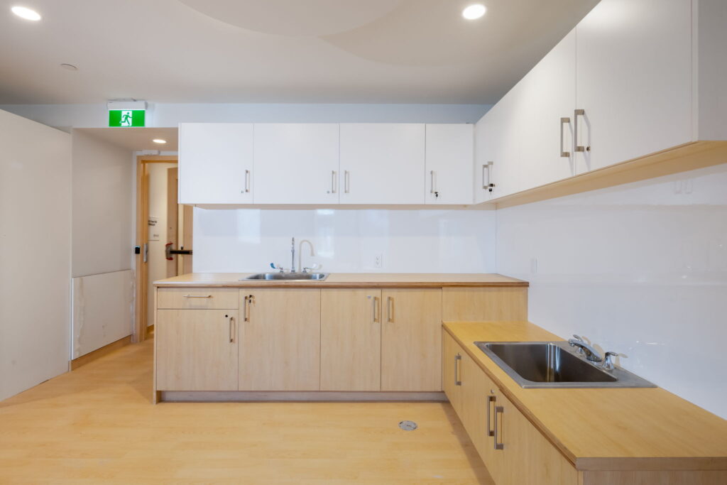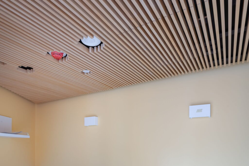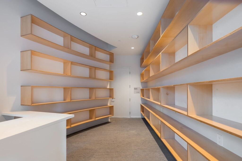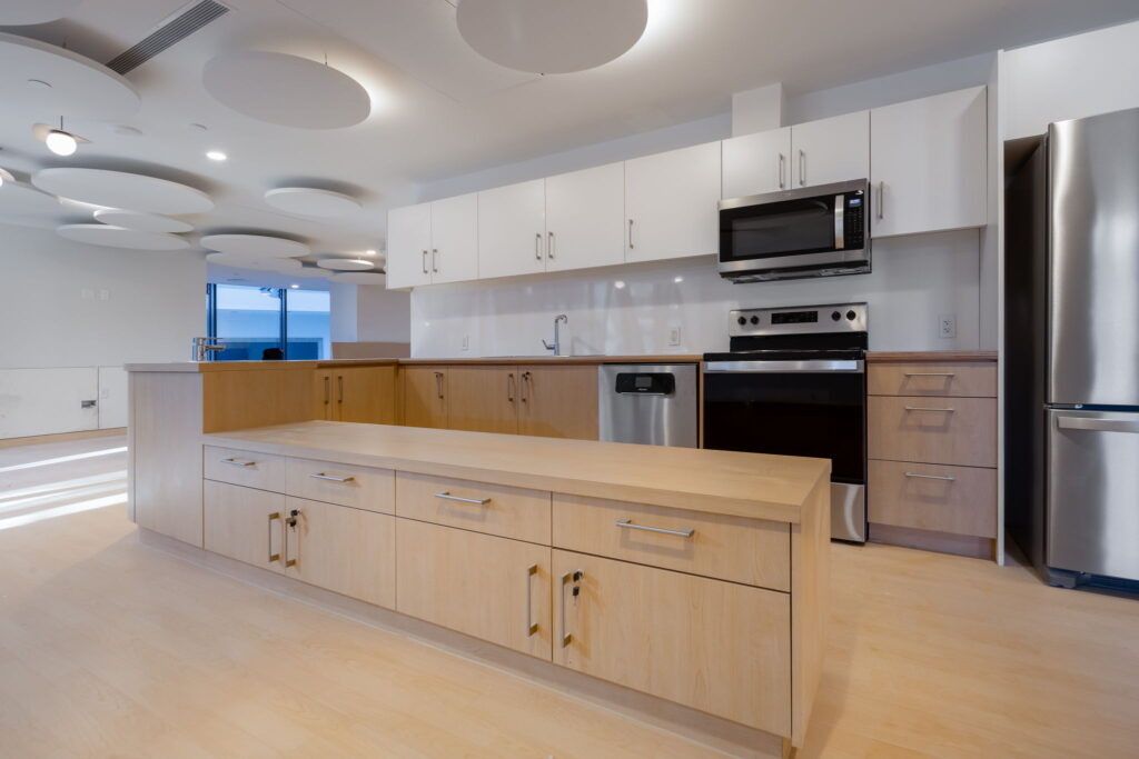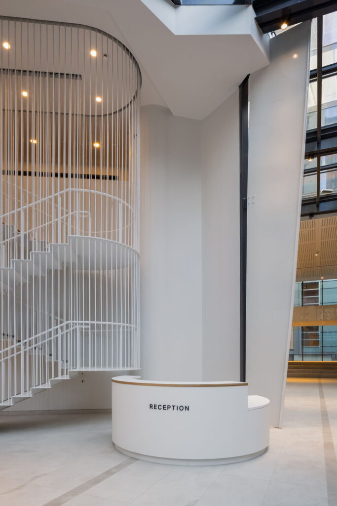 Our scope included custom millwork, wood wall paneling, metal elements, and integrated stone features. Signature highlights include curved wood veneer panels that echo the building’s flowing façade, precision-crafted cabinetry with concealed hardware, and stone-clad feature walls with brass detailing. Distinctive custom elements such as brushed metal trims and recessed lighting details reflect the elegance and complexity of the overall design.