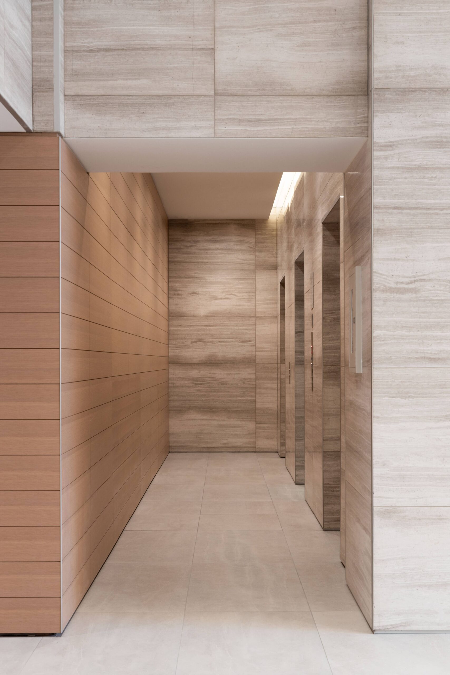 Supplied and installed elevator paneling, lobby reception desk, and amenity areas.